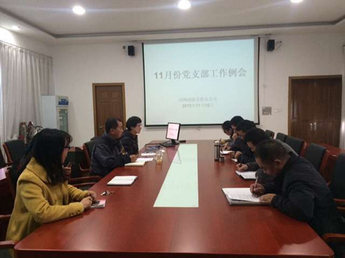 會議學習了黨的十八屆五中全會精神、《中國共產黨廉潔自律準則》和《中國共產黨紀律處分條例》。會議對前階段黨建工作進行了總結,對黨建項目化成果發布、共產黨員服務隊競賽、隊伍穩定等近期重點工作進行了具體布置。