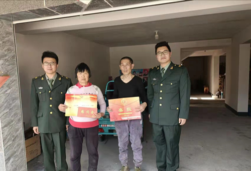 4月11日,荊州鄉武裝部、退役軍人服務站來到榮獲“四有”優秀學員的現役軍人胡辰宇同志家中,為他家人送去喜報和慰問金,同家屬促膝談心,詳細了解家屬的家庭生活情況,傾聽他們的訴求,感謝他們對國防事業的支持,希望他們鼓勵胡辰宇同志在部隊再接再厲,再創佳績,再立新功。